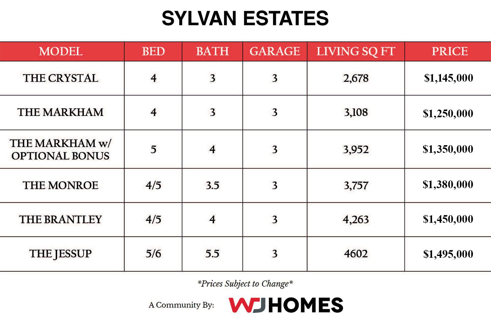 We are always updating our available homes, showing our models; and inside the breakdown sheet you will see their individual details.